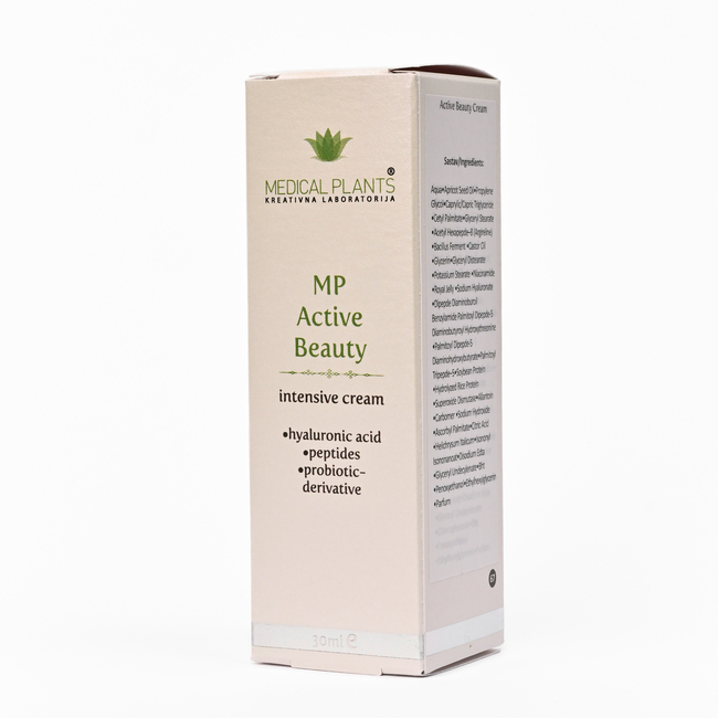 Active Beauty Intensive Skin Care Cream je anti-age dnevna i noćna krema bogata matičnim mlečom, peptidima i probioticima koja hidrira, podmlađuje i štiti kožu od štetnih uticaja sredine. Obezbeđuje blistav, zdrav i glatki ten.