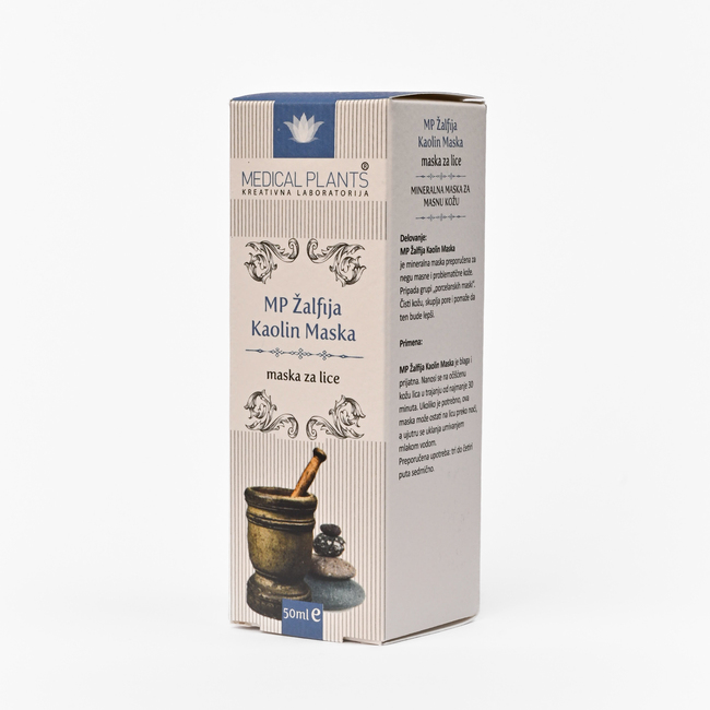 Kaolin Žalfija maska je kremasta glinena maska namenjena masnoj, problematičnoj i kombinovanoj koži, koja dubinski čisti pore, apsorbuje višak sebuma i umiruje kožu. Zahvaljujući kaolin glini, ulju žalfije i cink-oksidu, koža ostaje glatka, osvežena i vidno pročišćena.