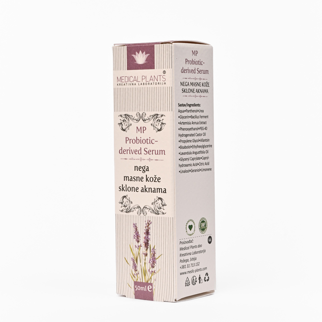Probiotic-derived serum je lagan, brzo se upija i pogodan je ne samo za masnu, već i za dehidriranu kožu, te pomaže u poboljšanju tonusa kože zahvaljujući prirodnim sastojcima i probiotskoj podršci.